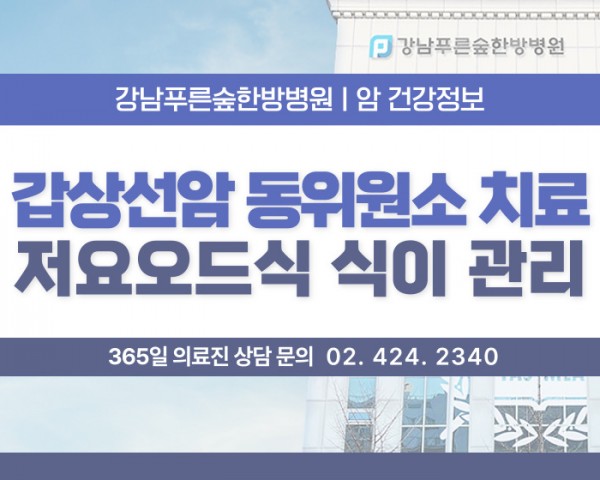 안녕하세요.강남푸른숲한방병원입니다.갑상선암 수술을 마친 뒤받게 되는 동위원소 치료는남아 있는 갑상선 암세포를 제거하기 위한중요한 과정입니다.이때 치료 효과를 극대화하기 위해꼭 지켜야 하는 것이 바로저요오드(low iodine) 식이입니다.요오드는 갑상선 세포 . . .