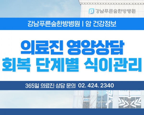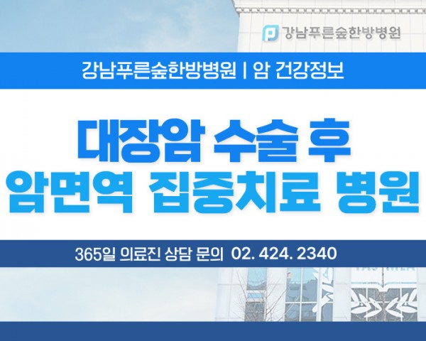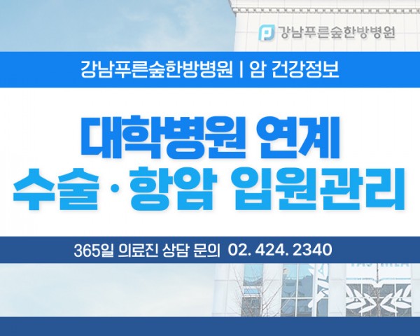 안녕하세요.강남푸른숲한방병원입니다.암 수술을 마친 후 회복기간은환자분에게 있어서두 번째 중요한 치료의시작이라고 볼 수 있습니다.수술 자체가 신체에큰 부담을 주는 과정이기 때문에,그 후의 회복 관리가 향후면역력 유지와 재발 방지,삶의 질에 많은 영향을 미치게 됩니다.오늘은 이 회복기에 적 . . .