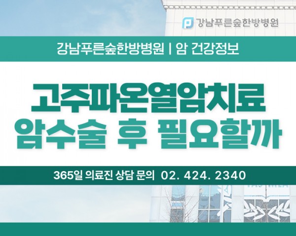 안녕하세요.강남푸른숲한방병원입니다.암 치료를 받는 많은 환자분들께서 면역력 강화에 대해 관심을 갖고 계십니다. 그 이유는 명확합니다. 면역 체계는 암세포를 인식하고 공격하는 중요한 방어선이기 때문입니다. 이 과정에서 고주파온열암치료는 . . .