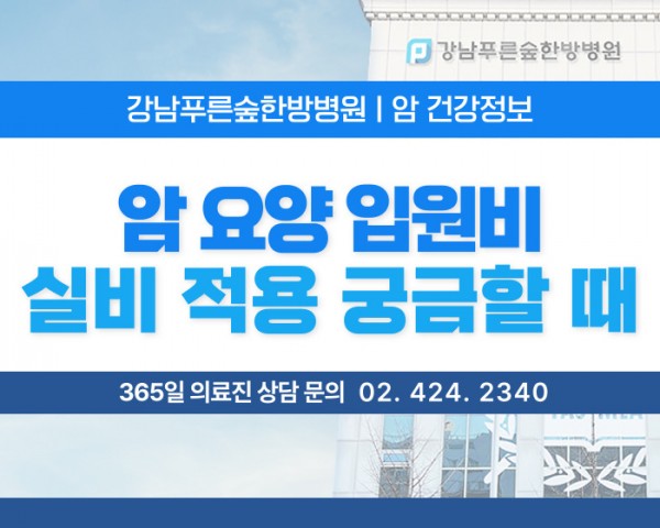 안녕하세요.강남푸른숲한방병원입니다.암 수술을 마친 후 환자분들,보호자분들께서 가장고민하시는 것 중 한가지가어디에서 회복 치료를 받을 것인가입니다.입원치료가 가능한 요양병원이나한방병원 등을 놓고 비교하게 되는데요. 이 때 병원 시설부터 치료 프로그램,실비 보험 적용 여 . . .