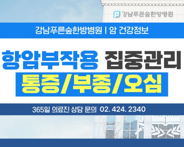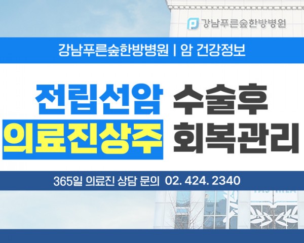 안녕하세요.강남푸른숲한방병원입니다.전립선암은 비교적진행이 느린 암으로 알려져 있지만,치료 과정에서는 신체적 피로와심리적 부담이 함께 찾아오는경우가 많습니다.수술, 방사선 치료 등의과정 이후에는 면역력 저하,체력손실 등으로 인해체계적인 회복 관리가 꼭 필요한데요.삼성병원에서 5분 . . .